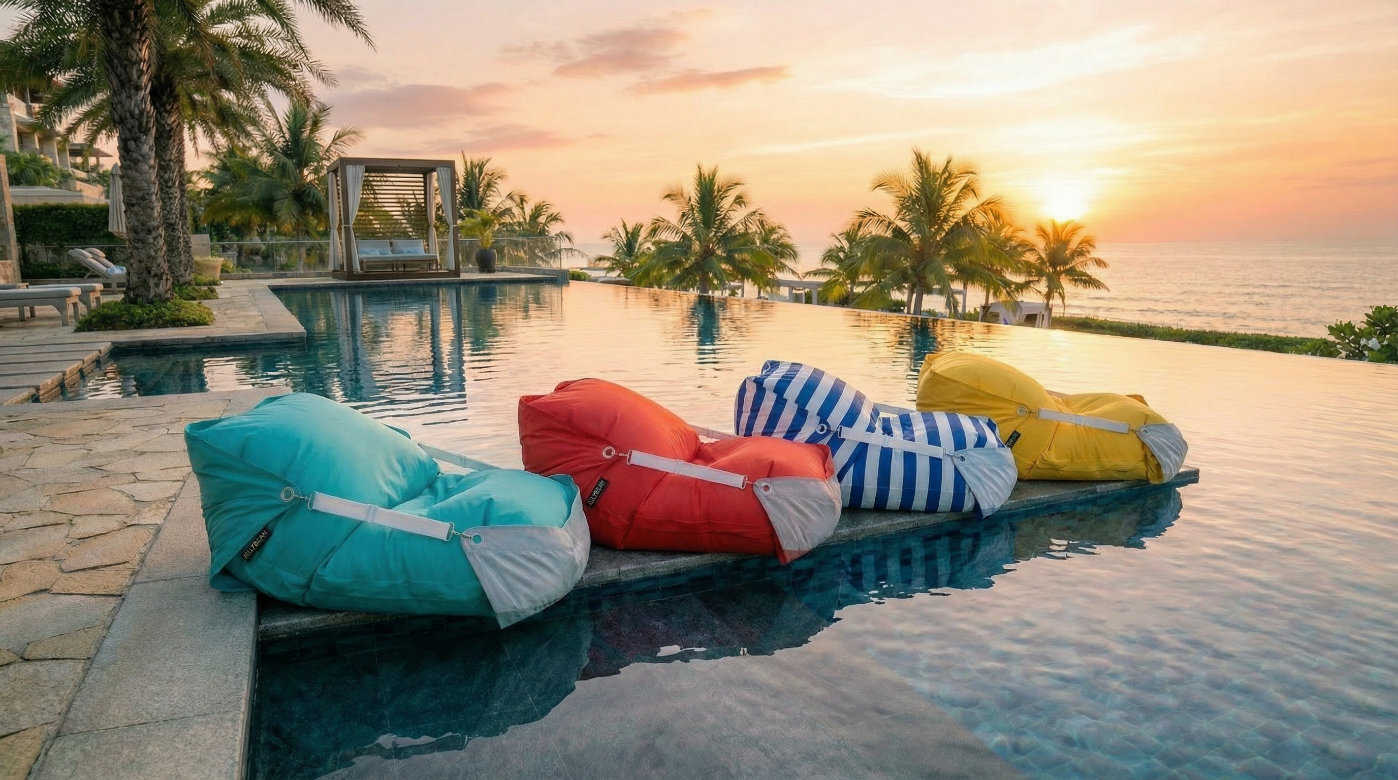 Premium outdoor bean bags designed for Australian backyards, pools, and patios — fully floatable, weather-ready, and ridiculously comfortable.